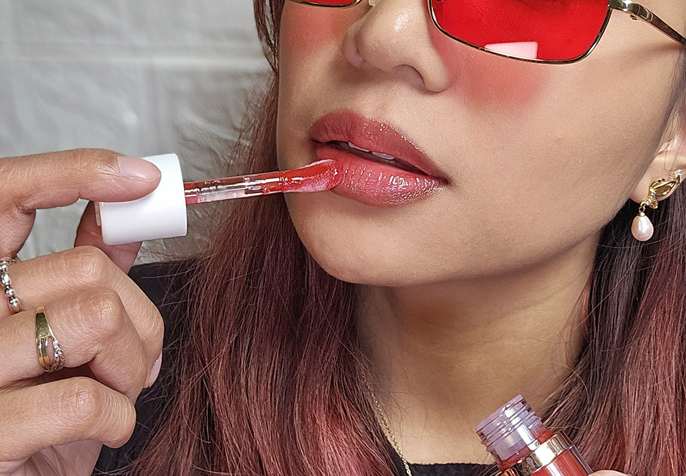 While actual tanghulus are fruits coated in a hard, glossy sugar shell, its beauty equivalent are lips drenched in glossy, shiny (and sometimes glittery) finish that gives a wet, plumped-up effect. Unlike sticky glosses of the past, today’s products combine hydration, color, and mirror-like shine, creating a lip look that’s both comfortable and striking. This trend started gaining traction in 2024, with beauty influencers showcasing the magic of combining a nude lippie, liquid lip balms, hydrating lip oils, and sheer glosses but it involved a lot of steps and products so we’re stoked to share our new discovery which can bring the same effect in just one step.